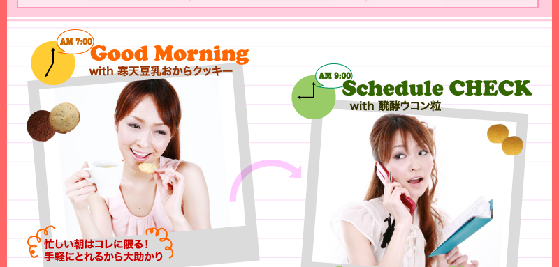 食事やおやつ代わりに3〜4枚を水と一緒に摂取。クッキーに含まれるおからやチアシード、寒天が何倍にも膨らんで、驚くほどの満腹感が得られます。必要な栄養成分もしっかりとれて、健康的なダイエットをサポート。